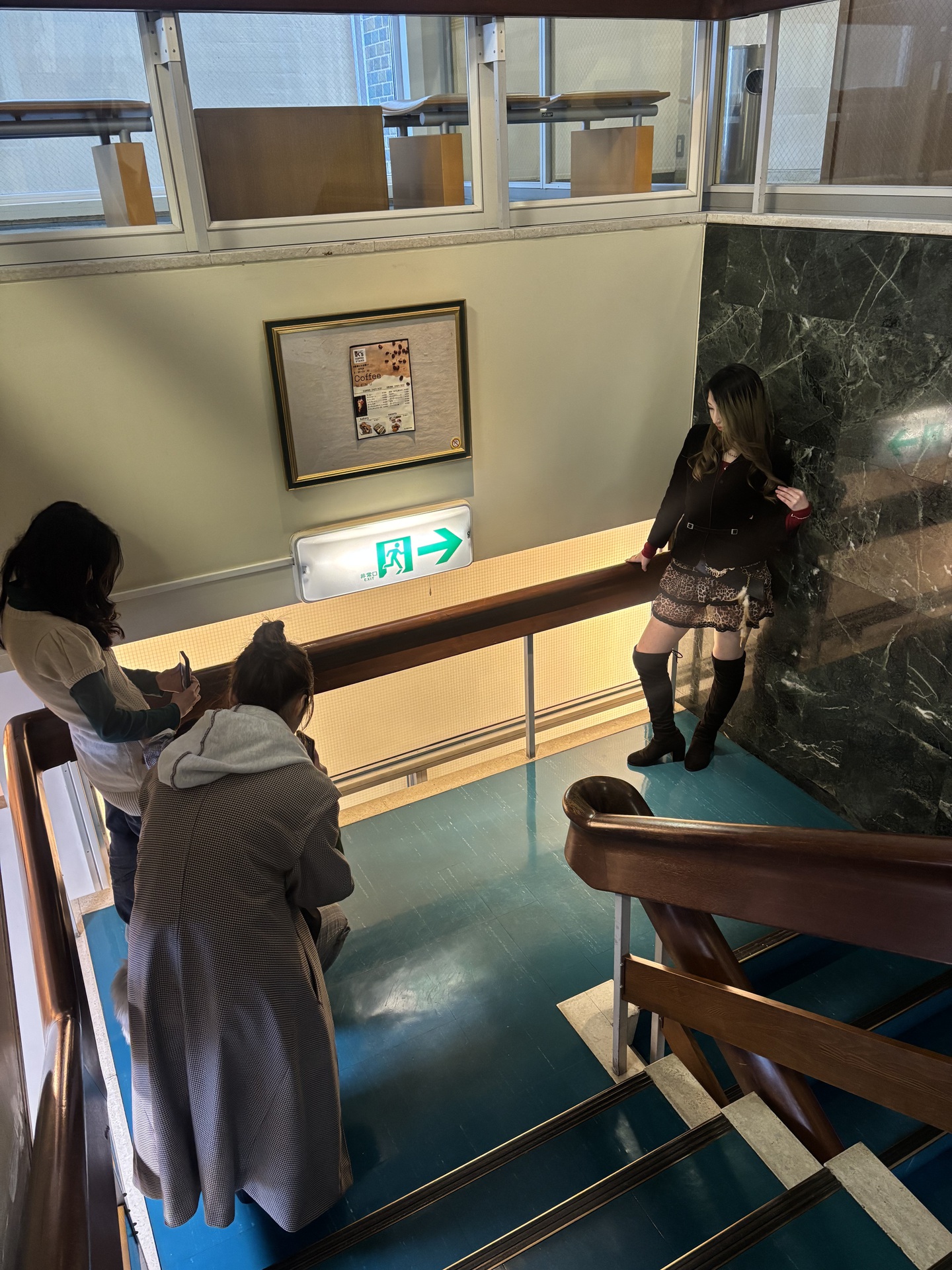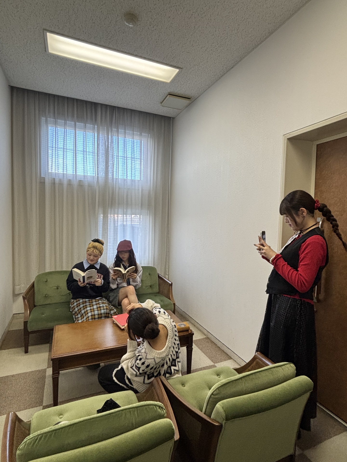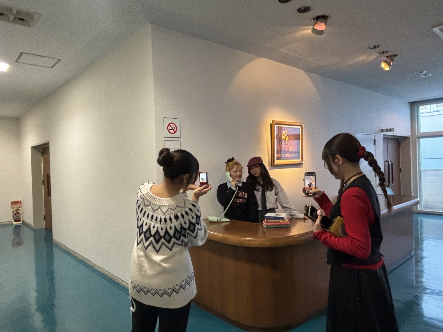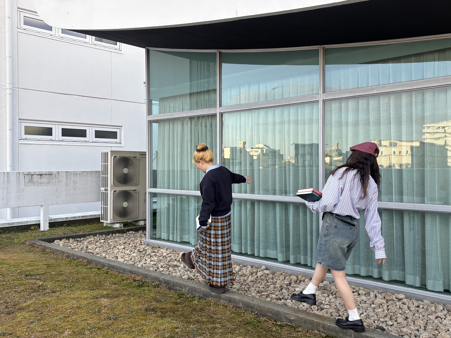 皆さん館内各所をくまなくチェックしながら、どのように撮影するかイメージを膨らませながら、お洋服と相性の良いロケーションを探していました。それはとても楽しみながら授業に取り組んでいる様子でした。