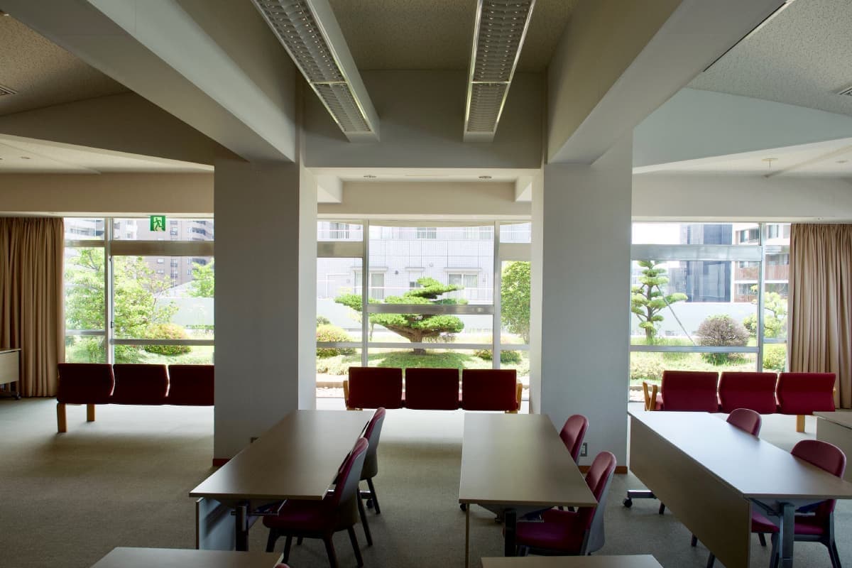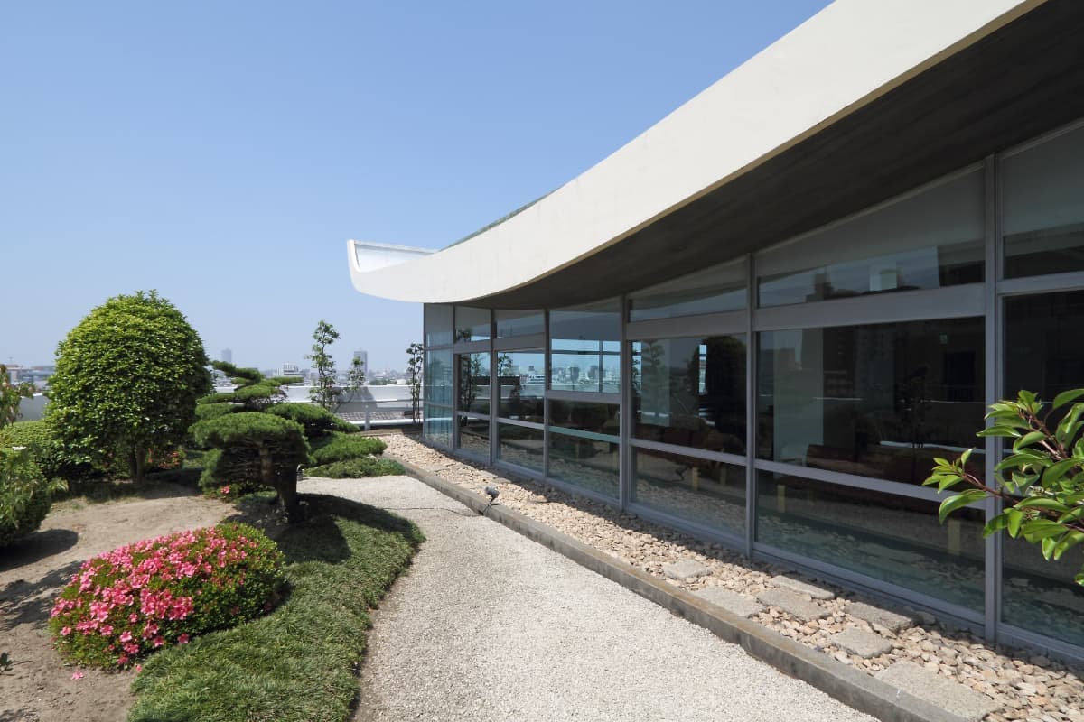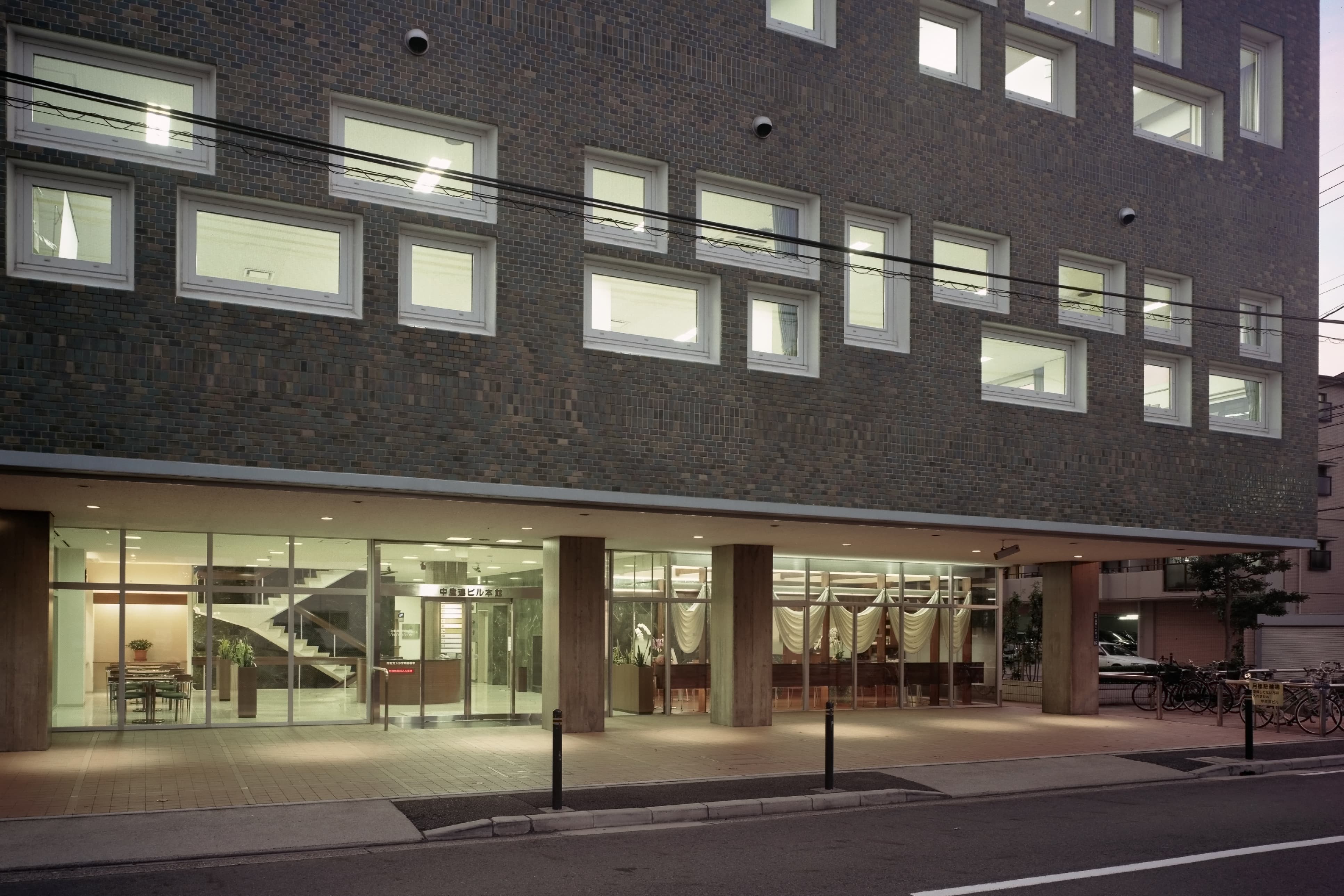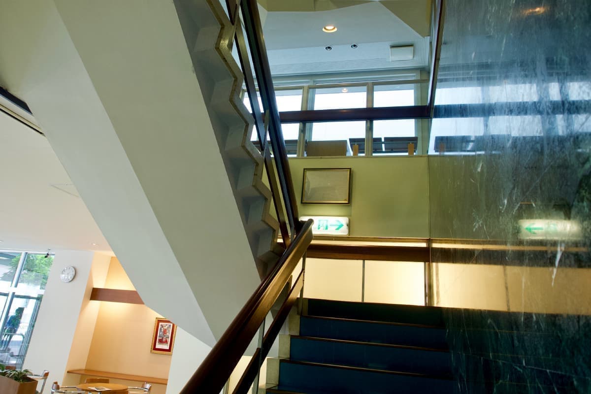 PHOTOS 中産連ビル本館写真 昭和モダニズム、表通りからは見えない「隠れた名建築」 中産連ビル本館は、1963年(昭和38年)3月に社団法人中部産業連盟(当時)の研修施設として完成しました。グリーンのタイル貼り外観が映える建物は、有名な建築家、故坂倉準三先生により設計され、現在もそのダイナミックで重厚感ある佇まいは時代を超えた存在感を放っています。各階毎に趣を変える部屋の顔は、それぞれに静けさと落ち着きのある雰囲気となっています。