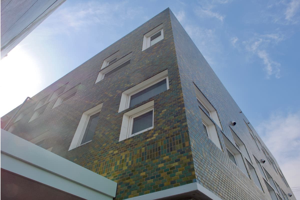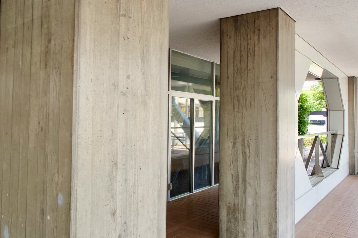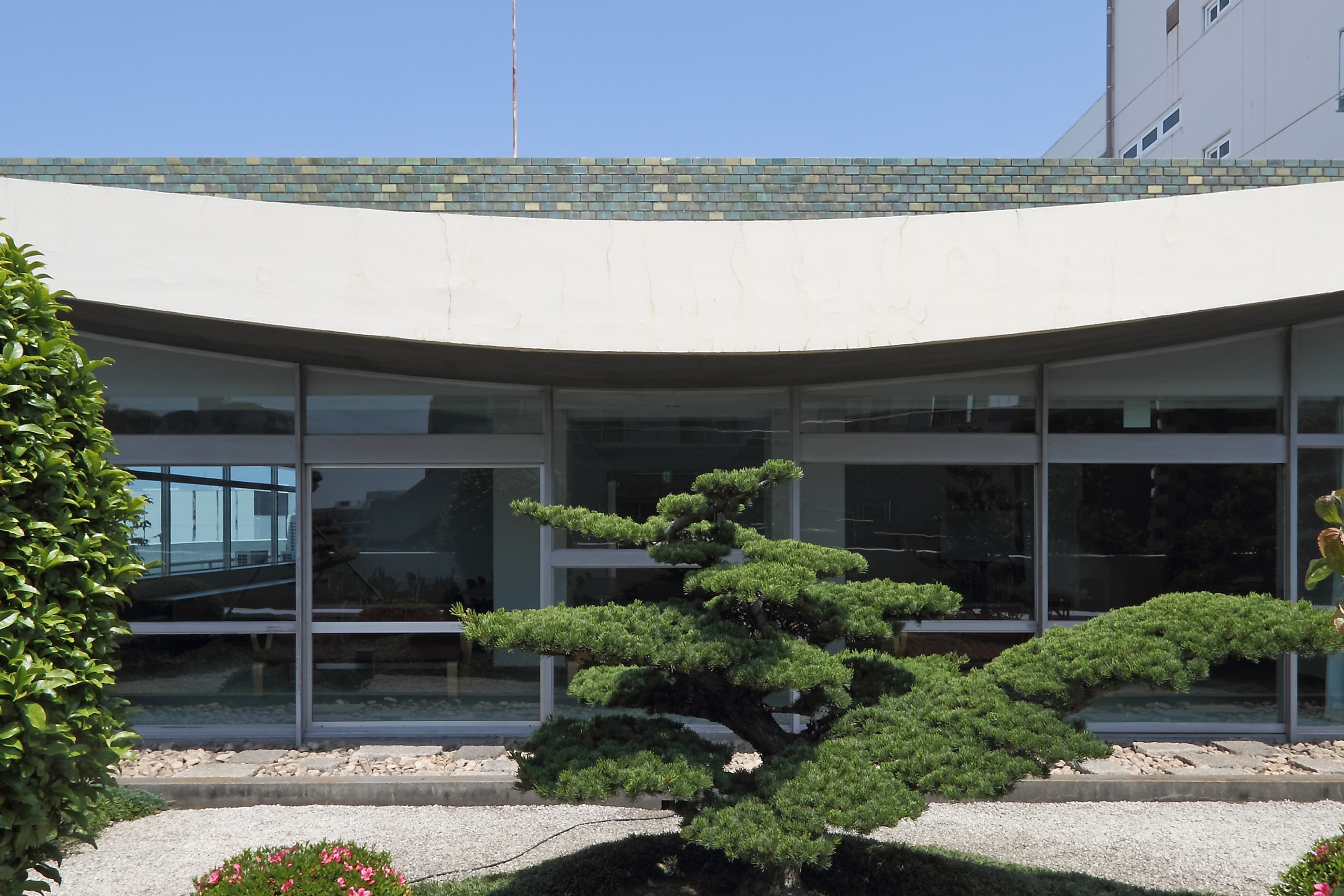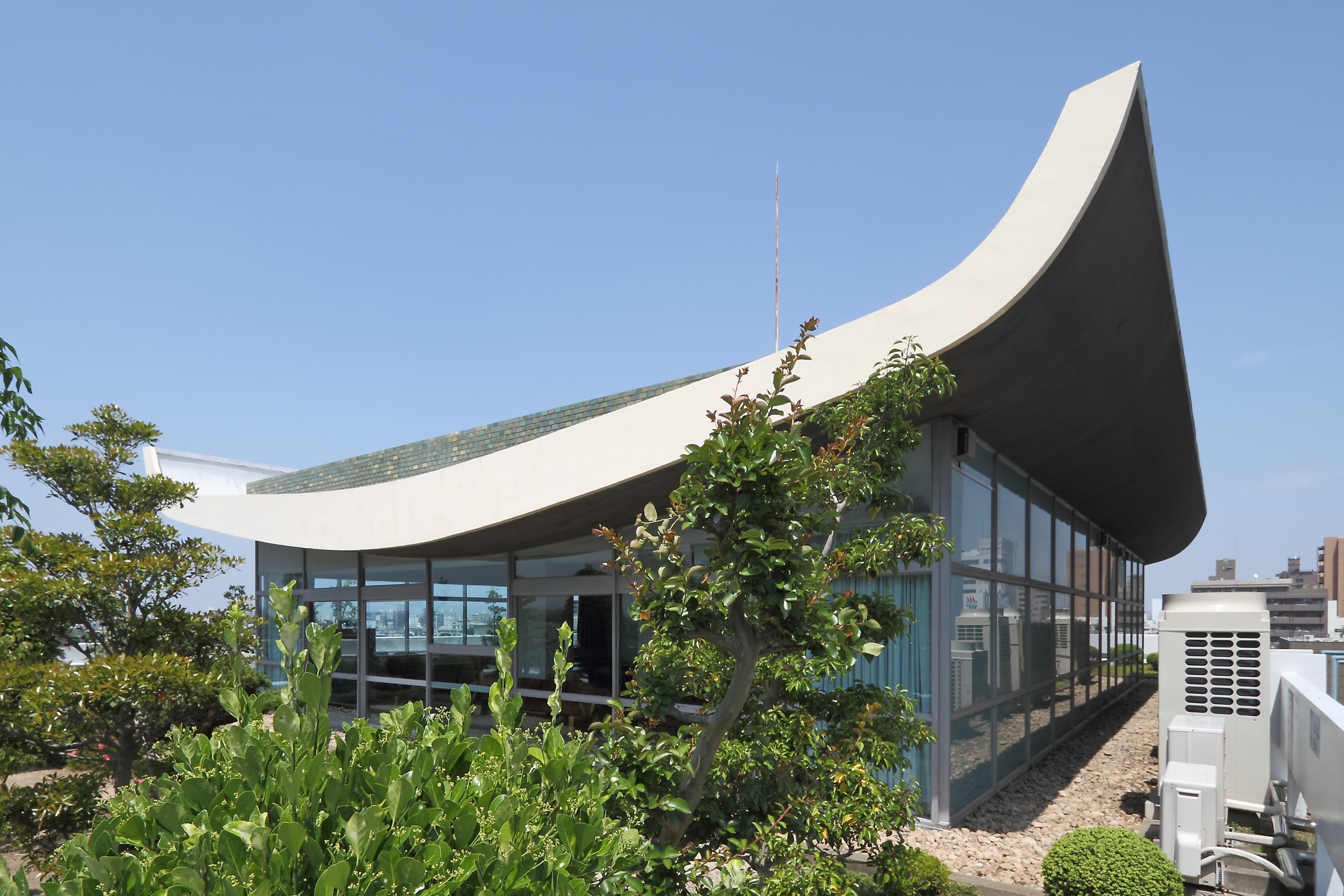 PHOTOS 中産連ビル本館写真 昭和モダニズム、表通りからは見えない「隠れた名建築」 中産連ビル本館は、1963年(昭和38年)3月に社団法人中部産業連盟(当時)の研修施設として完成しました。グリーンのタイル貼り外観が映える建物は、有名な建築家、故坂倉準三先生により設計され、現在もそのダイナミックで重厚感ある佇まいは時代を超えた存在感を放っています。各階毎に趣を変える部屋の顔は、それぞれに静けさと落ち着きのある雰囲気となっています。